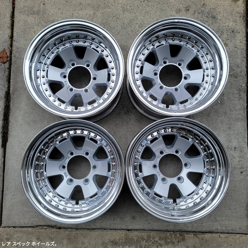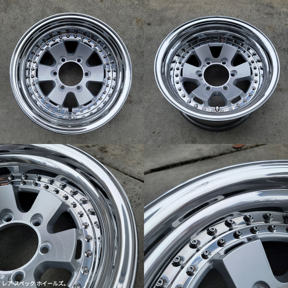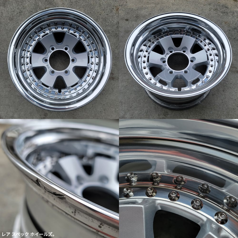 True 3pc construction. Faces have been fully restored. Outers and inners have visible pitting from age/corrosion. Original M8 Work Hardware is in fair condition. New M8 nuts installed. New Valves installed. Fresh seal.