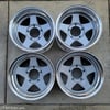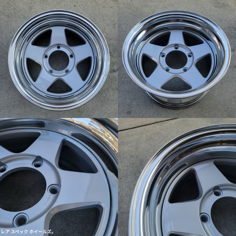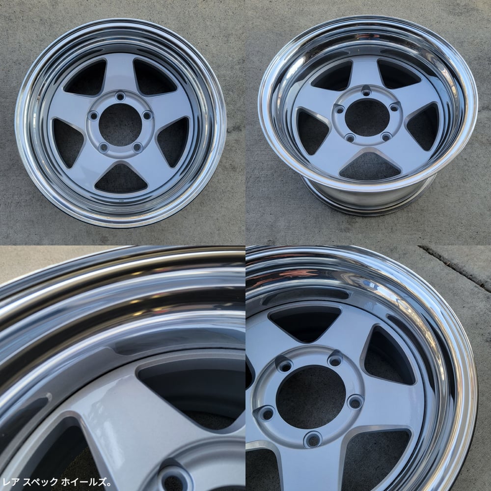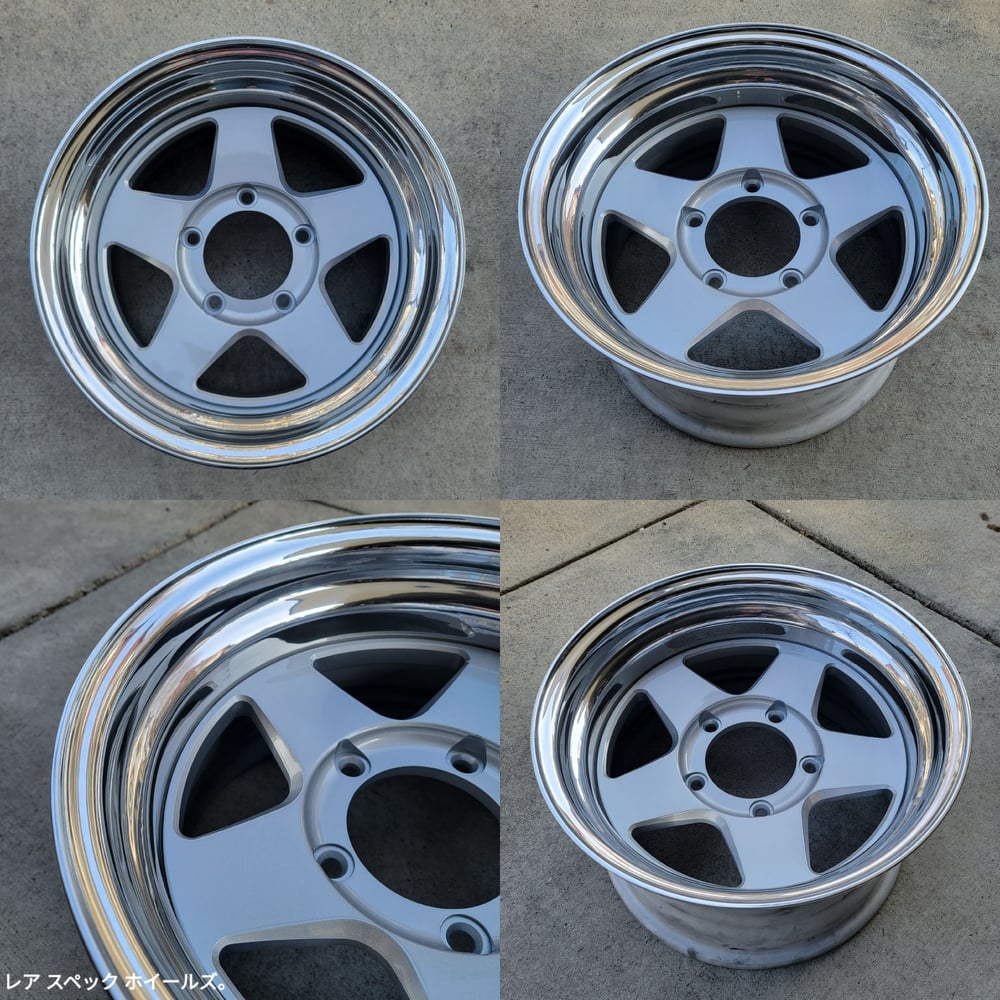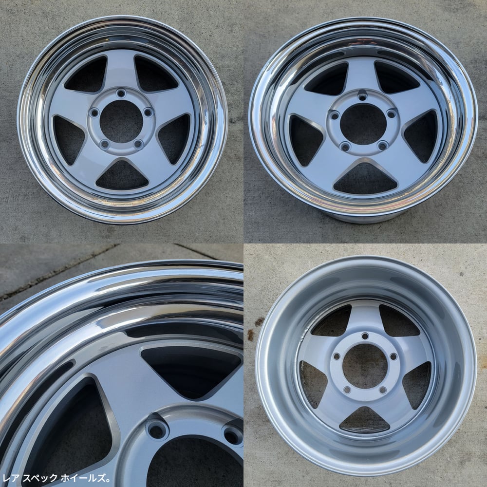 2pc forged construction. Originally this was a 16x8 & 16x9 staggered set. The wheels were fully stripped. Two of the wheels were cut apart and new 16x6" outers were welded on. Faces and inners repainted Toyota Celestial Silver. New Valves included.