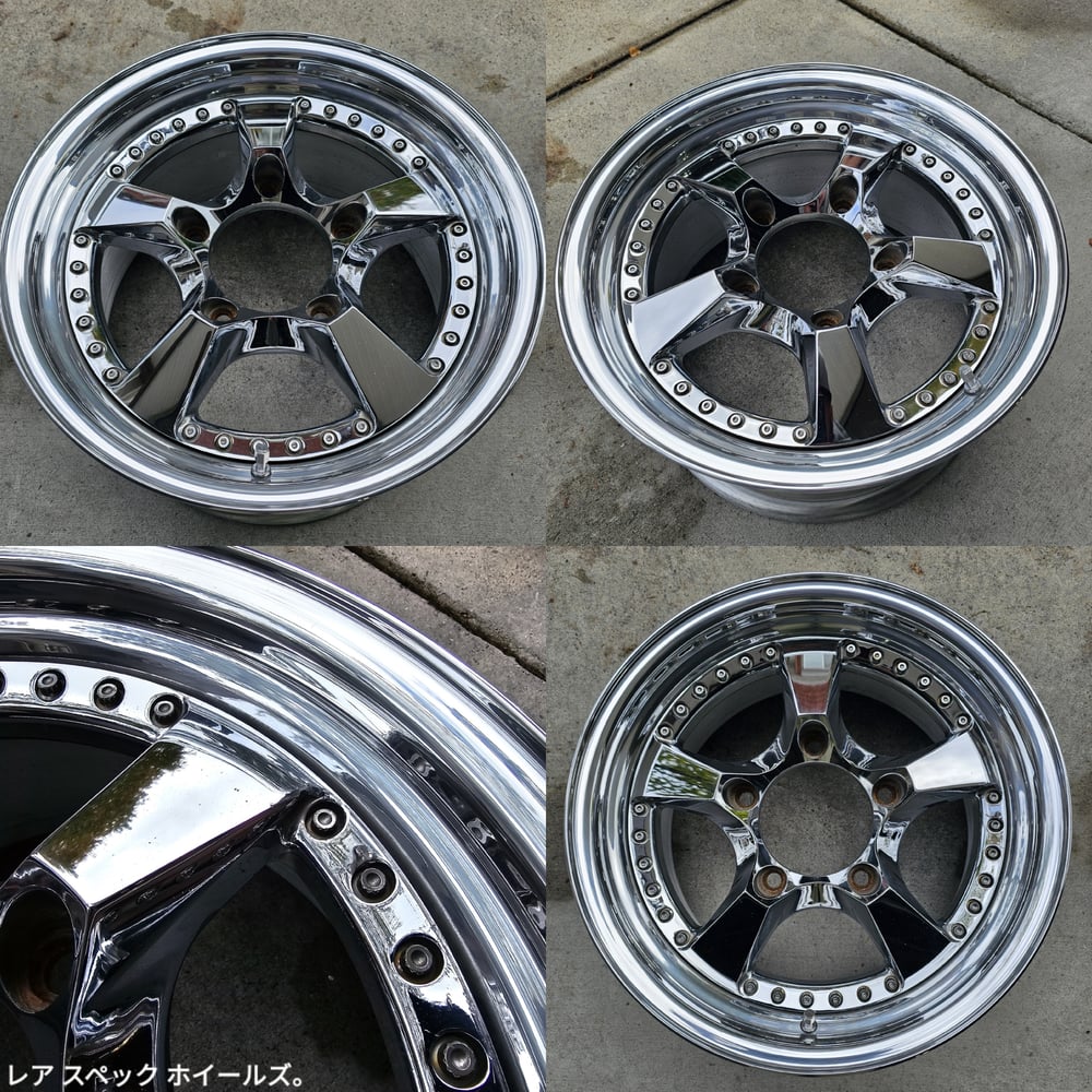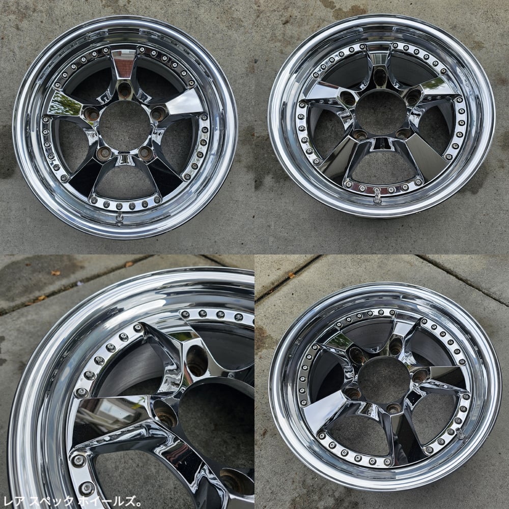 Wheels sold AS IS. Original chrome finish with some pitting. Please see photos. Outers were stripped and repolished. New valves. Original M6 bolts, new nuts.