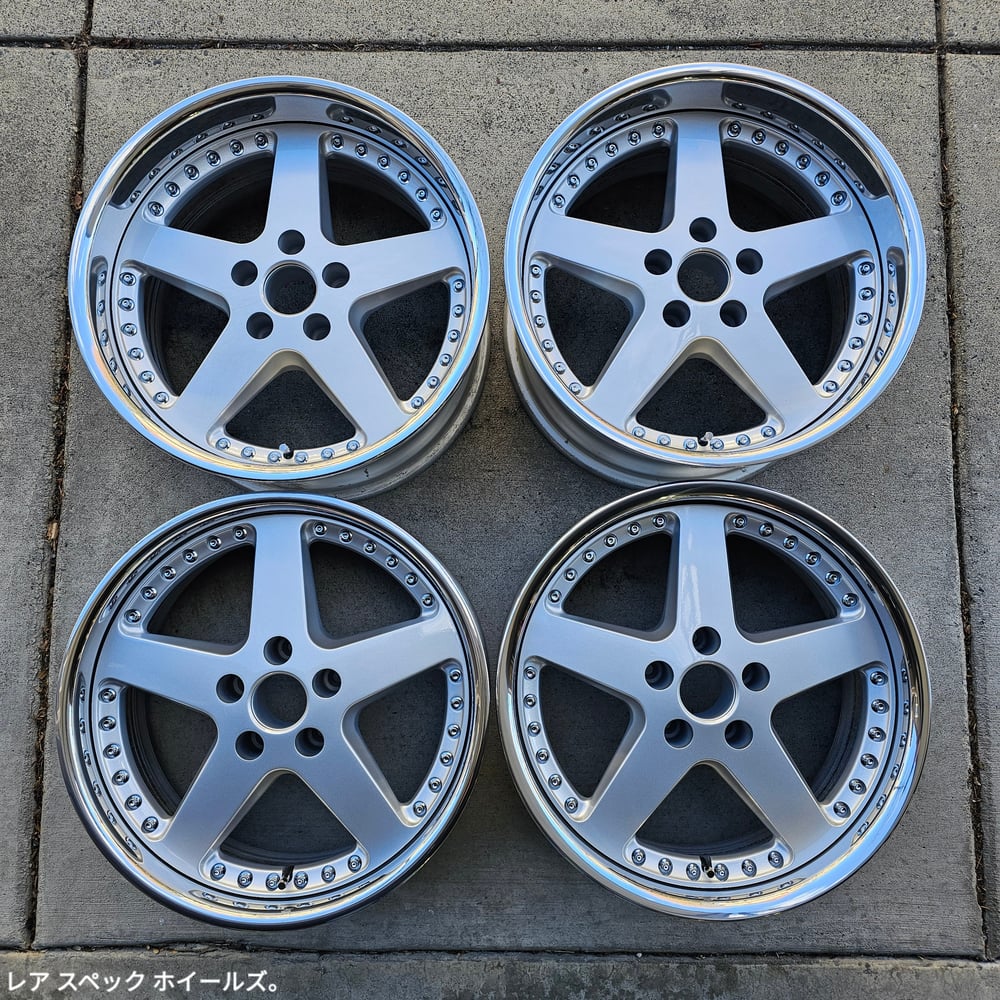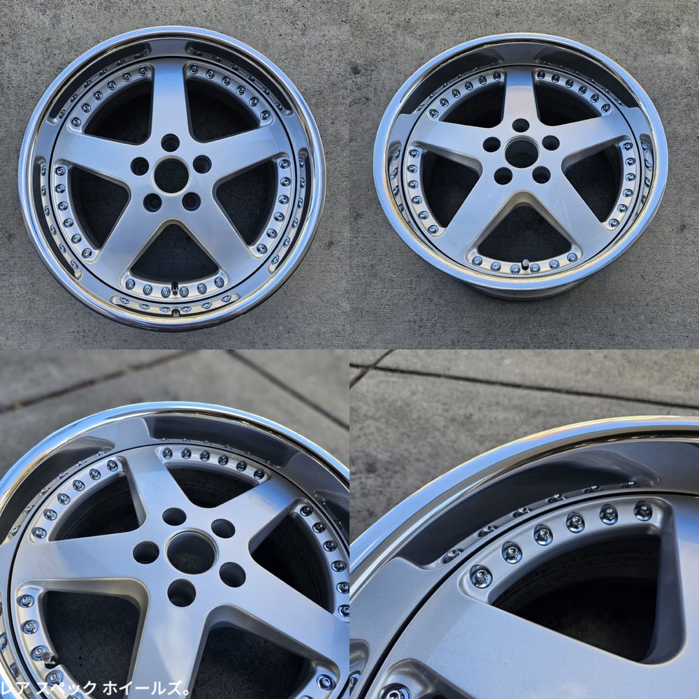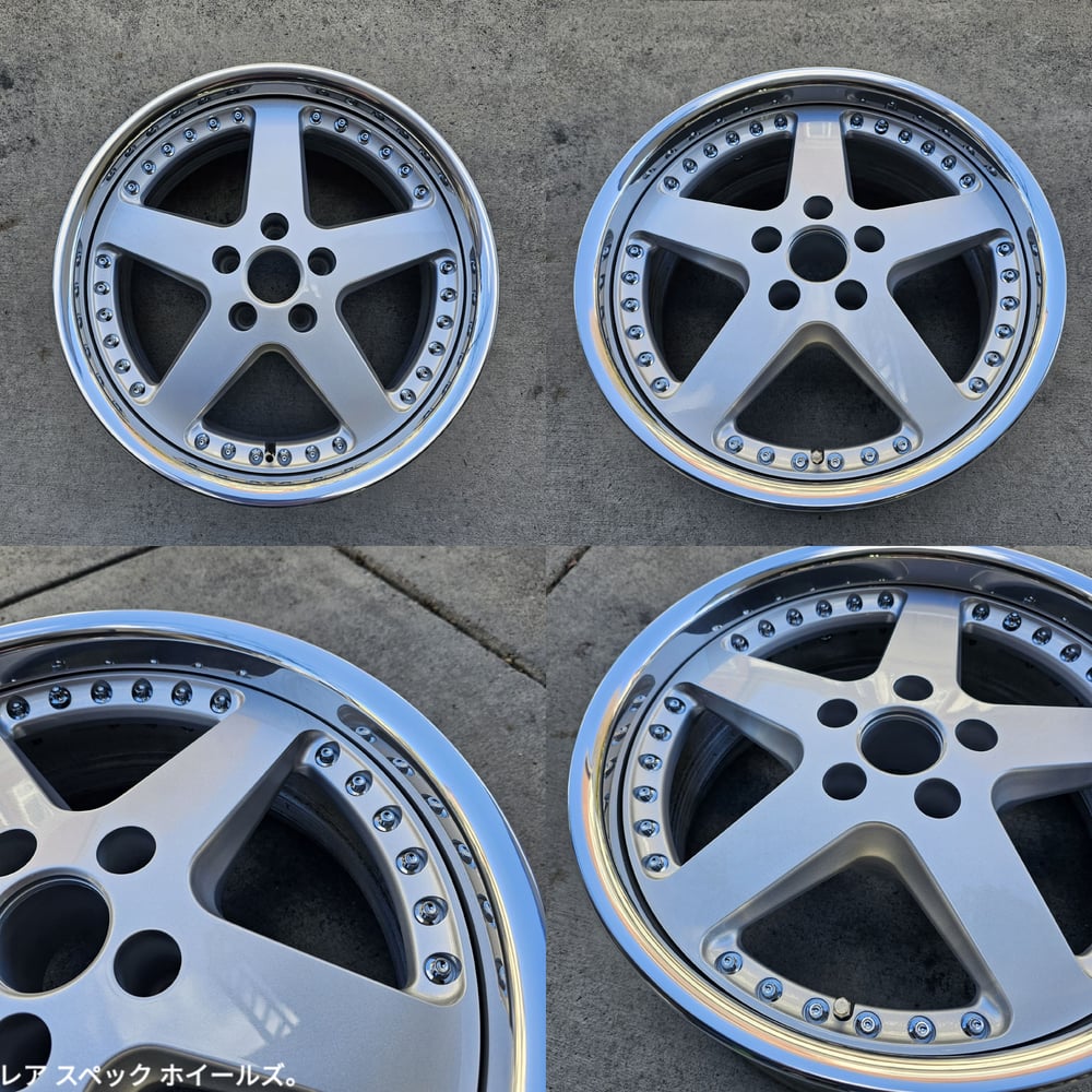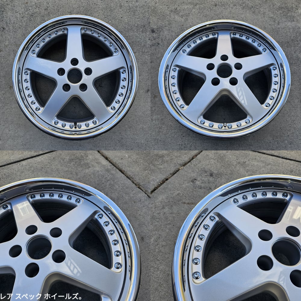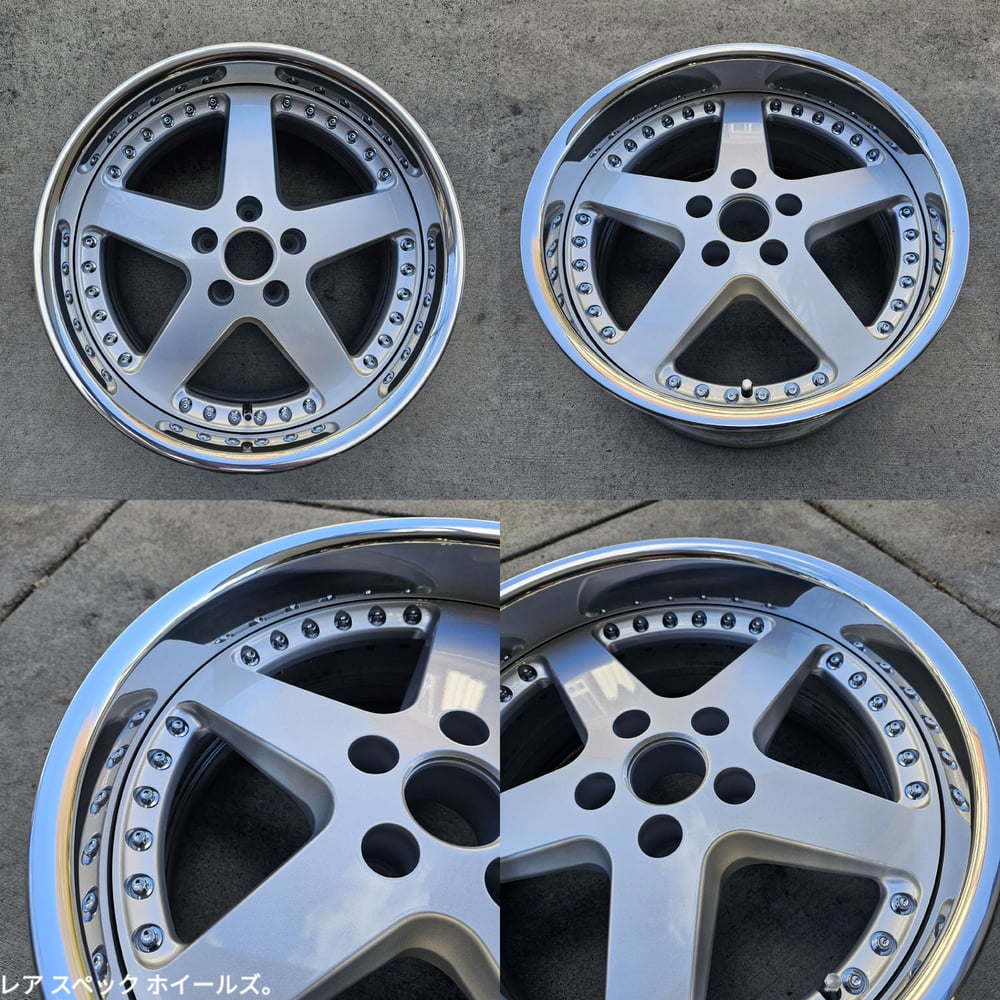BBK friendly set of 3pc wheels. Wheels were fully stripped, centers repainted silver, outers repolished. All new M8 chrome hardware and stainless valves.